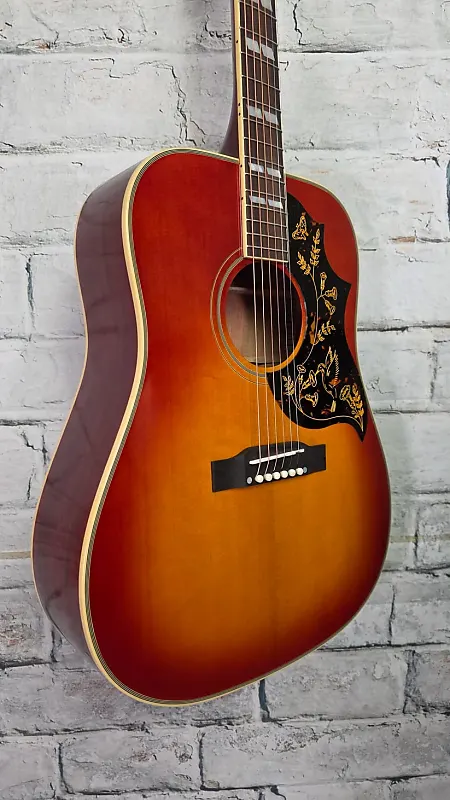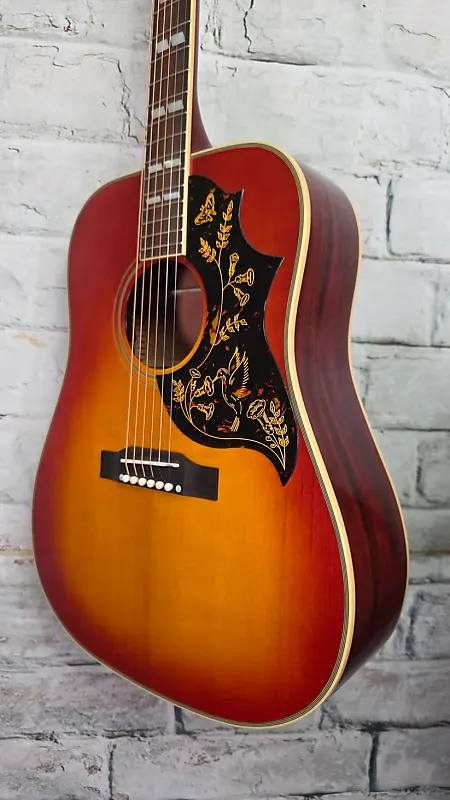 Модель 1960 Hummingbird включает все элементы декора, которые делают оригинальные винтажные гитары мгновенно узнаваемыми. Корпус украшен многослойной окантовкой верха и корпуса. Плоская розово-декоративная накладка под струнами оснащена компенсированным костяным седлом, а порожек и колки также выполнены из кости. Звукосниматель имеет легендарную форму колибри и гравированное художественное оформление. дизайн. На головке грифа установлены золотистые тюнеры Epiphone Deluxe с зелеными кнопками Keystone, которые обеспечивают стабильную настройку, чтобы вы могли проводить больше времени за игрой и меньше - за проверкой тюнера. На головке грифа также есть двухслойная черно-белая крышка под стержень грифа, а логотип Epiphone и корона Gibson выполнены из состаренной перламутровой инкрустации. Форма головки грифа напоминает стиль Gibson «открытая книга», на задней части выгравировано двойное бриллиантовое лого Inspired by Gibson Custom.