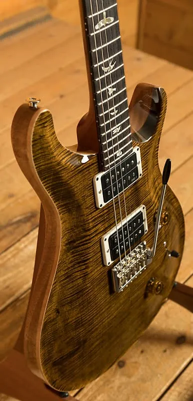 Эта гитара PRS Custom 24 оснащена фигурной вырезанной крышкой из клена и задней частью из махагони, сочетаясь с грифом из махагони с профилем Pattern Thin и накладкой из палисандра. Она имеет мензуру 25 дюймов и 24 лада, оборудована звукоснимателями DMO и 5-позиционным переключателем для управления тоном, и поставляется с кейсом. Как оригинальная и самая продаваемая модель PRS с момента своего дебюта в 1985 году, Custom 24 остается основополагающей моделью бренда, часто оставаясь в тени новых моделей, таких как DGT, специальная полупустая и 24-08, но при этом продолжает обеспечивать исключительный звук и удобство игры.