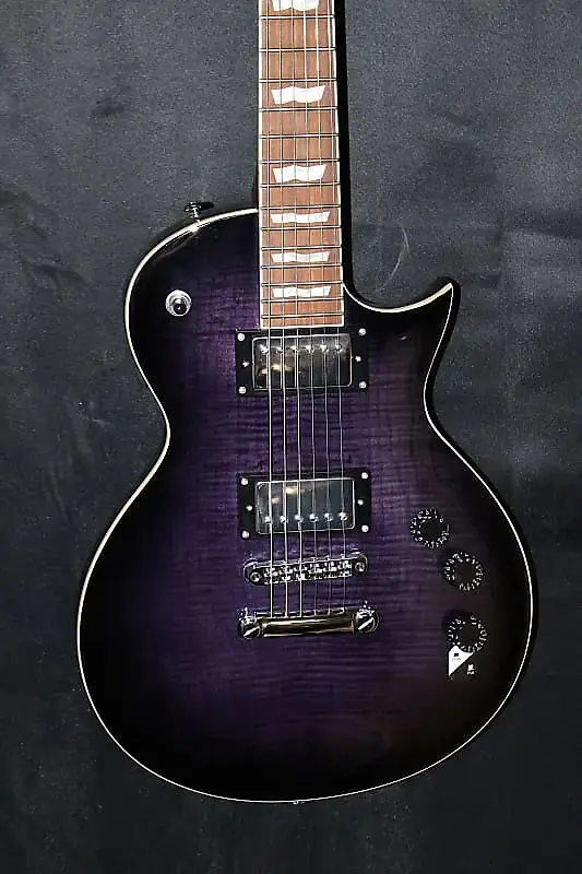 EC-256FM Прозрачный фиолетовый Электрогитара ESP LTD EC-256 в цвете Прозрачный кобальтовый синий предлагает идеальное сочетание современной удобства игры и классического звучания. Корпус из махагони с изогнутой верхней частью и установленной на грифе шейкой из махагони обеспечивает четкие низы и продолжительное звучание, предоставляя звук и ощущение, которые превышают его ценовую категорию. EC-256 оснащена двумя хамбакерами ESP LH-150, которые обеспечивают теплый, насыщенный тон с ясностью и детализацией, что идеально подходит для рока, хард-рока и металла. Потенциометр тона с функцией push-pull позволяет переключаться на звонкие одношкальные тона, когда это необходимо. Корпус и гриф из махагони обеспечивают тепло и сустейн EC-256 обязан своим богатым звучанием корпусу из махагони и трехсекционной шейке из махагони. Махагони производит теплый, сбалансированный звук с акцентом на средние и низкие частоты, а конструкция с установленным грифом усиливает сустейн для пронзающих соло и ритмов, которые длятся долго. Двойные хамбакеры ESP LH-150 обеспечивают универсальный тон EC-256 оснащена парой хамбакеров ESP LH-150, которые обеспечивают идеальное смесь мощности звучания и артикуляции. Гитарные звукосниматели LH-150 обеспечивают теплый, насыщенный тон с плотными низами, выразительными средними частотами и контролируемыми высокими - идеально для рока и метала. Потенциометр push-pull позволяет получать яркие звучания с одиночных звукоснимателей для дополнительной выразительности и четкости. Премиальные компоненты и конструкция От бриджа Tune-O-Matic до никелевых колков, EC-256 оснащена качественными элементами, которые обычно встречаются в более дорогих гитарах. 22 экстрамюжно-массивные лада позволяют исполнять выразительные соло с широким диапазоном. Главный регулятор громкости, главный регулятор тембра и 3-позиционный переключатель обеспечивают простое, но разнообразное управление звуком. Впечатляющий внешний вид и удобство игры С контурным корпусом из красного дерева с двойным вырезом EC-256 сочетает комфорт и рок-атмосферу. Сыгнутая верхняя дека придает инструменту стильный, дорогой вид. Тонкий U-образный профиль грифа и ладовая накладка из палисандра с радиусом 12 дюймов обеспечивают быстрое, легкое скольжение пальцев, позволяя сосредоточиться на исполнении.