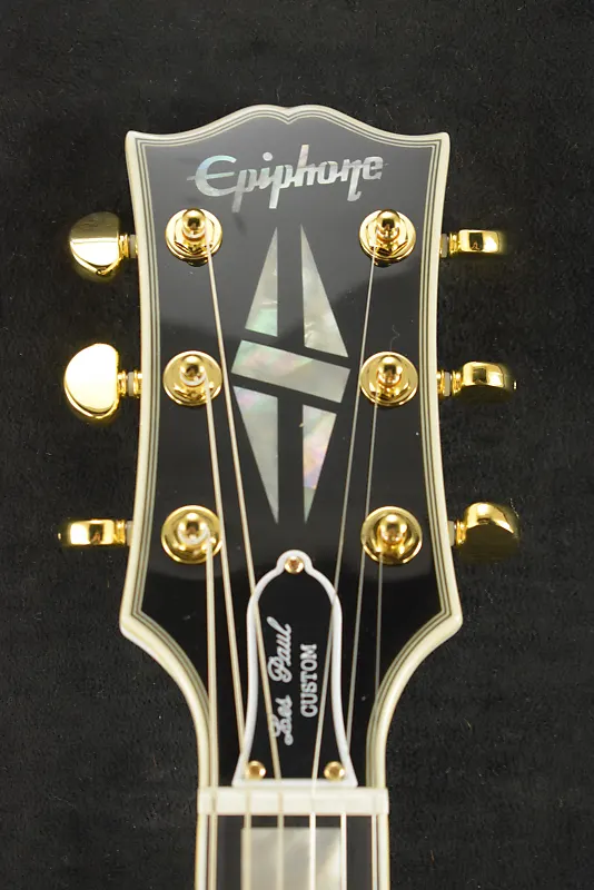 Инкрустация на головке грифа: логотип Epiphone и раздельный ромб Custom из перламутра
