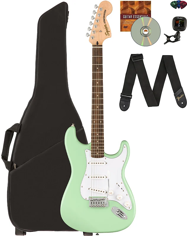 Fender Squier Affinity Stratocaster - комплект цвета Surf Green с чехлом, тюнером, ремнем, медиаторами и учебным DVD от Austin Bazaar
