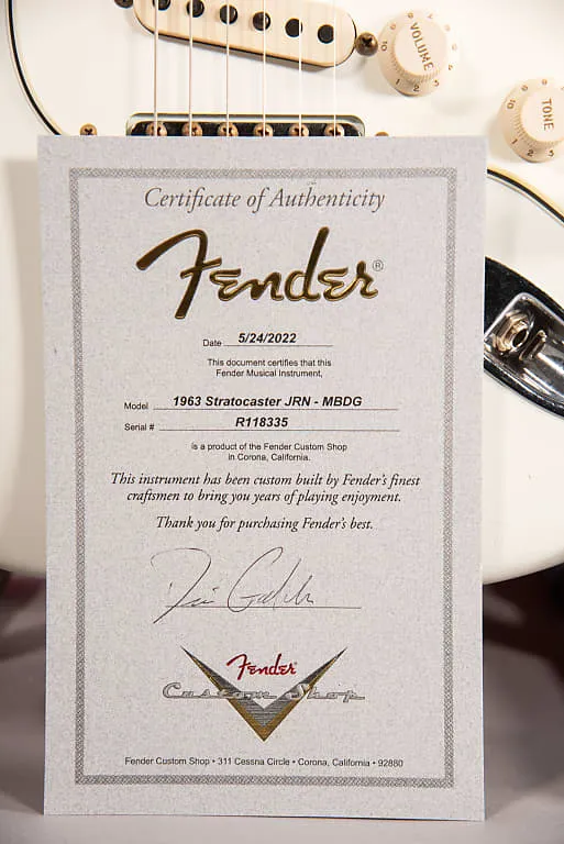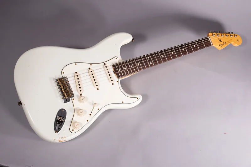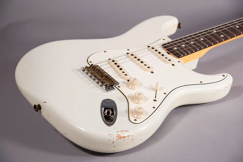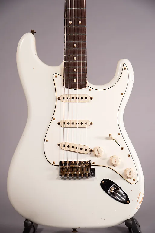 Fender Custom Shop 63 Stratocaster Journeyman Relic, мастерская сборка Денноса Галушка, состаренный Olympic White