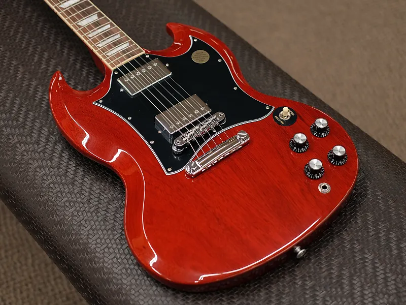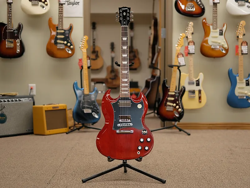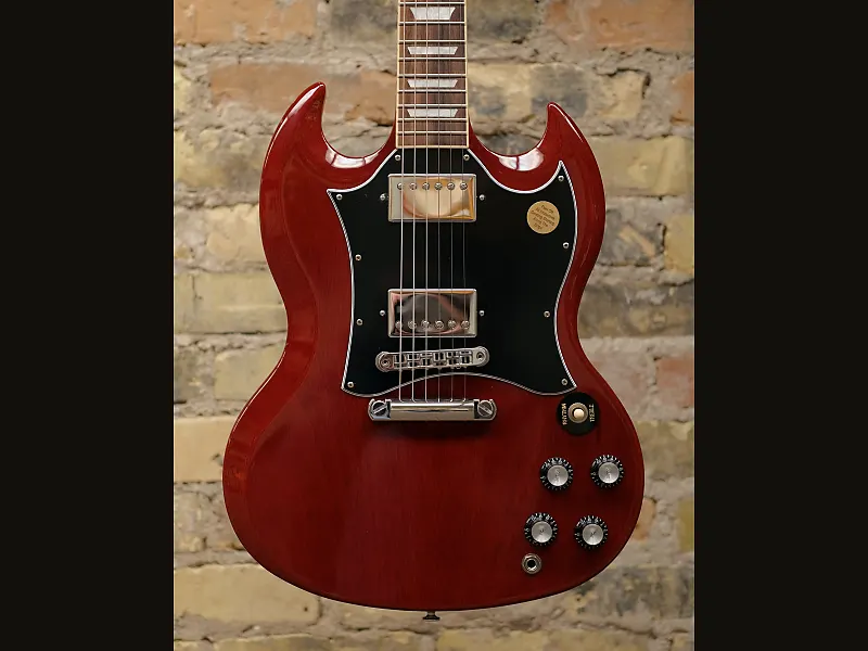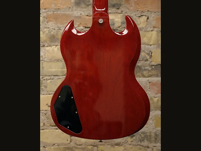 Gibson SG Standard сочетает в себе классический внешний вид и функции, связанные с моделями SG в стиле конца 60-х годов, которые многие искали. Гриф из красного дерева с закругленным профилем, гриф из розового дерева, длинное шиповое соединение грифа на 19-м ладу и прочный корпус из красного дерева обеспечивают основу для пения сустейна. Звукосниматели 490R и 490T Alnico II обеспечивают достаточную мощность для вождения. Черный, 5-слойный, полнолицевой медиатор выделяет этот SG Standard среди других... Поистине универсальная классика.