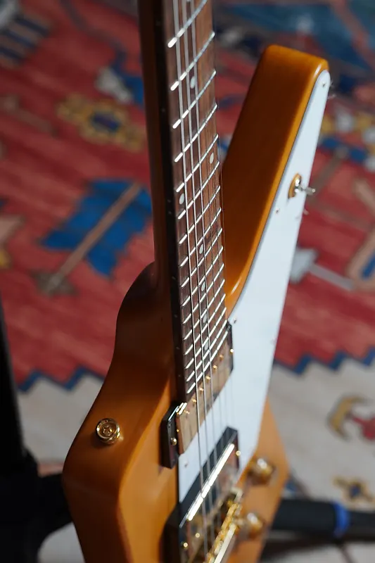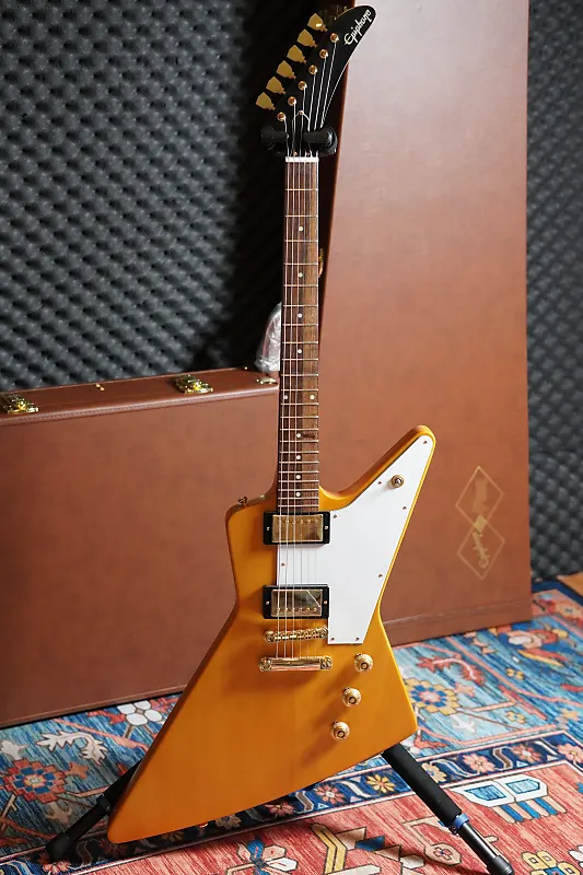 Созданная в партнерстве с Gibson Custom Shop, модель 1958 Korina Explorer является впечатляющей реконструкцией Epiphone одной из самых известных и ценных винтажных гитар. Она привносит аутентичные детали 1958 Explorer для гитаристов по всему миру по доступной цене. Как и ультра-редкие оригинальные модели Gibson 1958 года, она имеет цельное тело из Корины и гриф из Корины с длинным шипом и профилем грифа 1958 Explorer. Также оснащена накладкой из индийского лавра и золотой фурнитурой. Электроника также на высшем уровне: звукосниматели Gibson Burstbucker 2 и Burstbucker 3 подключены к индивидуальным регуляторам громкости и основному регулятору тембра с CTS потенциометрами и конденсатором Mallory, а также переключателем Switchcraft Трехпозиционный переключатель звукоснимателей и выходной разъем 1/4 дюйма. На задней части головки грифа гордо размещен логотип Epiphone x Gibson Custom, а также прилагается жесткий чехол.