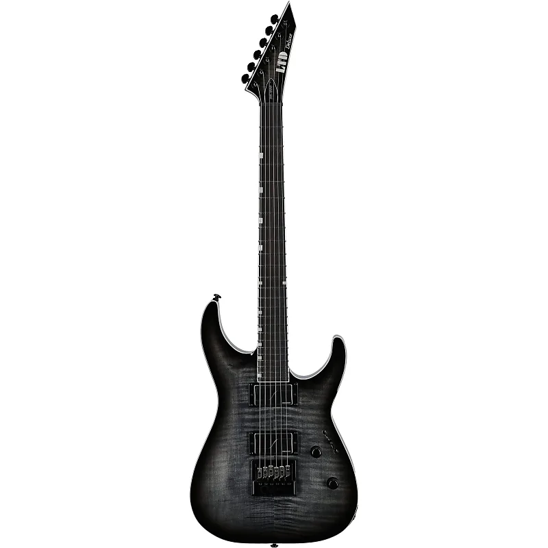ESP LTD MH-1000 EverTune предлагает конструкцию set-thru с мензурой 25,5 дюйма для удобного доступа к верхним ладовам, используя корпус из махагона с верхней декой из кленового флейма и трехсекционный кленовый гриф. Эта гитара включает инновационный мост EverTune с постоянной натяжкой, обеспечивающий идеальную настройку инструмента на всех участках грифа практически в любых условиях. Грифная накладка из маккасарского эбена имеет составной радиус для отличной эргономики, а также оснащена инкрустацией смещенными планками и 24 дополнительными крупными стальными ладами. Помимо моста EverTune, MH-1000 комплектуется отличной никелево-черной фурнитурой, включая точные колки Grover.