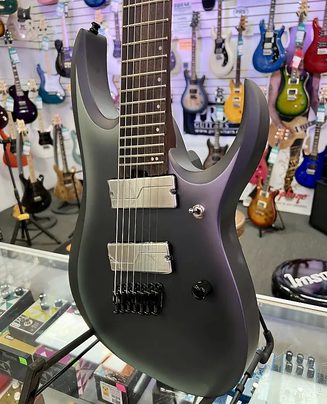 Люминесцентные боковые точки упрощают игру на темных сценах, соответствуя ослепительный светящийся логотип головы грифа Ibanez.