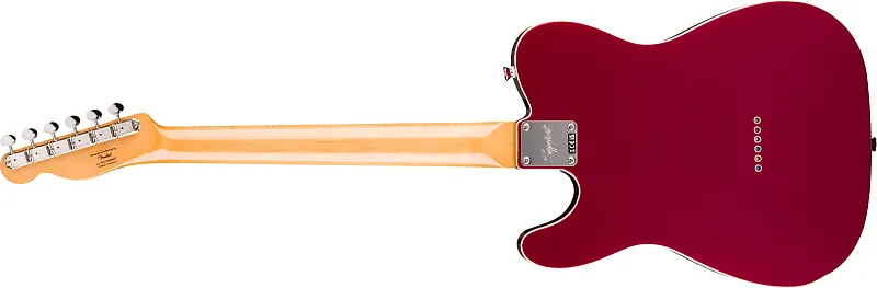 Эта ретро-модель Squier также имеет наклейки на головке грифа в стиле того периода, богатый никелированный металлический декор и глянцевую отделку грифа с винтажным оттенком для старомодного вида.