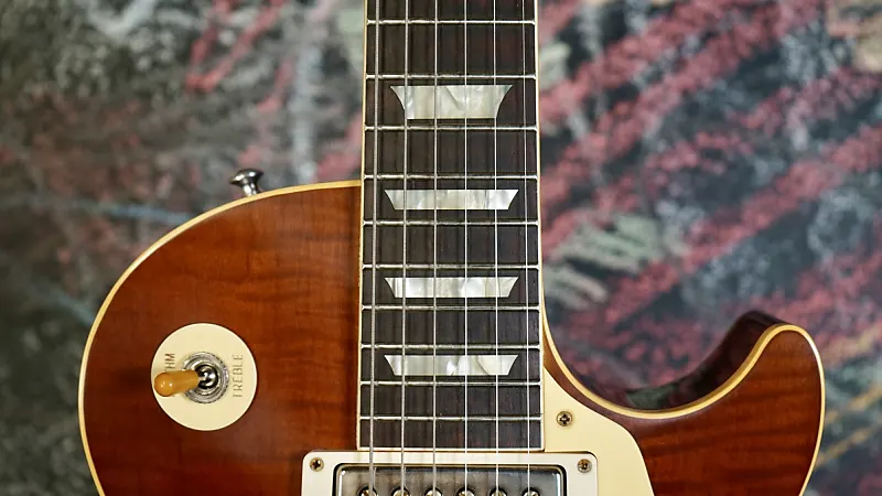 Модель 2021 R9 оснащена двухсекционной топовой крышкой из кленовой древесины с соединением на животный клей - в нашем случае в оттенке Iced Tea Burst, легким корпусом из махагони и грифом из сплошного махагони с накладкой из палисандра и профилем грифа Gibson Authentic '58 Medium-C. Лады Historic Medium Jumbo ощущаются гладкими, не слишком высокими и отлично подходят для бендинга. Эта LP - Оканчивается отделкой Gibson Nitrocellulose Lacquer VOS (Vintage Patina), поэтому на инструменте будет небольшое количество эффекта «релика», чтобы имитировать гитару возрастом более 50 лет. Также она обладает всеми атрибутами, характерными для того периода, такими как клей для дерева, окантовка из royalite, нейлоновая кость на порожке, накладки из целлюлозного нитрата в форме трапеций, накладка-пикигард из ламинированного целлюлозного ацетата бутират и др. Это настоящая редкость. И я даже еще не рассказал вам про звукосниматели.