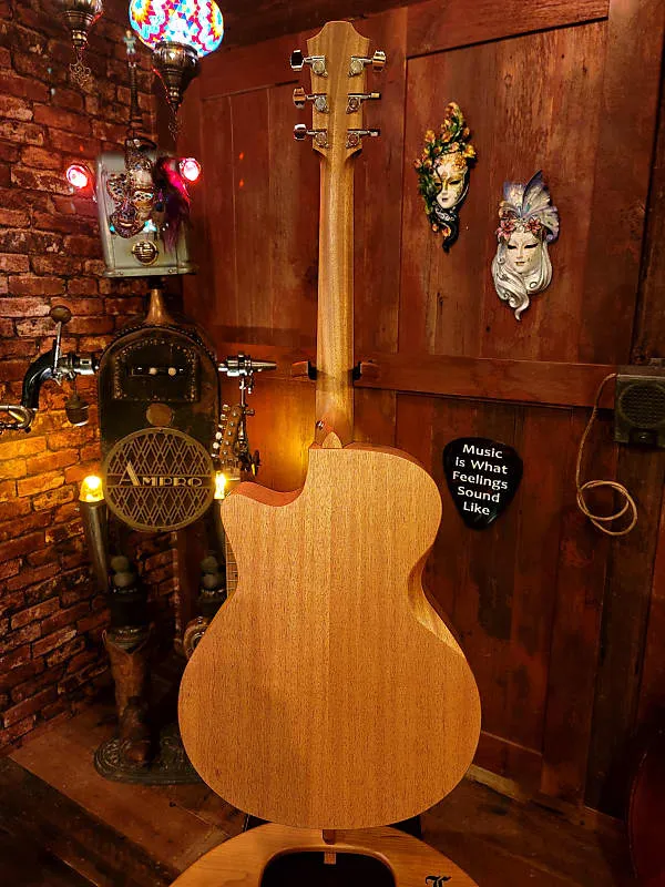 Violet Deluxe Gc-SM не идет на компромиссы в плане звука или мастерства изготовления. Дека инструмента выполнена из тщательно отобранной ели ситка, отличные акустические свойства которой дополнительно усиливаются нашим инновационным процессом индивидуальной настройки резонанса. Задняя часть и бока гитары изготовлены из африканского красного дерева. Эта комбинация придает гитаре идеально сбалансированный звук с ясными высокими частотами, теплым басом и длительное звучание, что делает ее идеальной как для нежного исполнения пальцами, так и для более агрессивного флетпикинга или перебора струн.