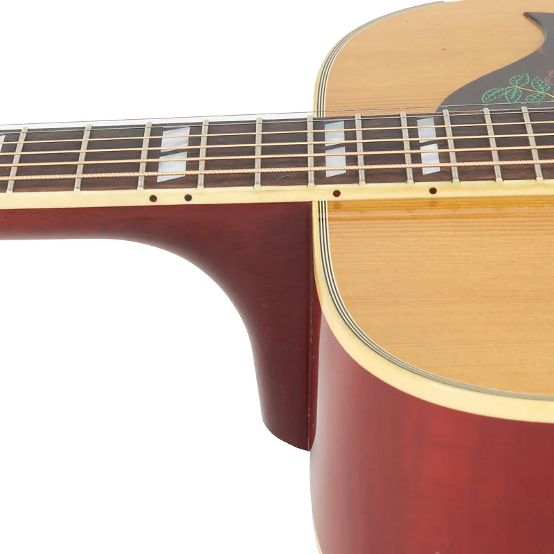 Визуально модель 1963 Dove Light Aged легко узнаваема. Мост из палисандра Dove украшен вставками в виде двух голубей из перламутра, а фирменный медиаторный щиток Dove имеет тисненые виноградные и цветочные мотивы с центральной вставкой-голубем из перламутра. Многослойная окантовка по верхней и задней декам добавляет элегантности, а клашонные колки Waffleback в старинной никелевой отделке обеспечивают плавную работу и аутентичный винтажный вид. Отделка Murphy Lab Light Aged завершает образ, добавляя тонкую трещиноватость и мягкие следы износа. который имитирует десятилетия любви и использования.