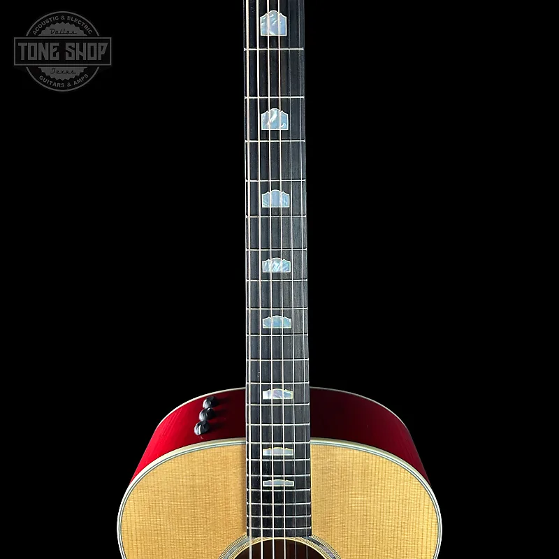 Объединяя визуальную и тональную изысканность, эта индивидуальная модель сочетает утонченные детали и смелую эстетику. Ярко-красная отделка подчеркивает привлекательный рисунок древесины фигурного клена Big Leaf на задней части и боках корпуса, которые сочетаются с верхней дека из натуральной торрефицированной ели Ситка с глянцевой отделкой в корпусе Grand Pacific с круглым плечом и структурой V-Class для улучшенной громкости и сустейна. Музыканты могут ожидать теплого, сбалансированного звучания с характерной зрелой тембровой окраской и четкой низкочастотной мощью. Роскошное оформление включает вставки из перламутра и гравированного игуавора Mission, розетку из зеленой абалоновой раковины, логотип на головке грифа из перламутра и гравированную окантовку игуавор, что делает эту гитару балансом между винтажной элегантностью и эффектной визуальной привлекательностью. Эта индивидуальная модель оснащена колками Gotoh 510 в античном хроме и электроникой ES2 и поставляется в роскошном жестком кейсе Western Floral.