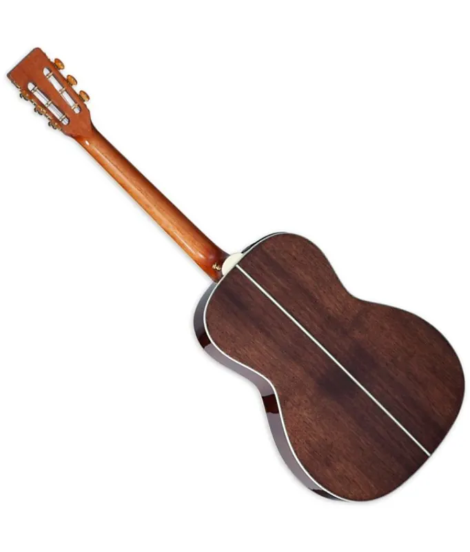 Изысканное сочетание дерева: Гитара имеет верх из массива ели вместе с задней и боковыми стенками из черного ореха. Это сочетание не только обеспечивает визуально поразительный контраст, но и создает чистый, артикулированный звук со сладкими средними частотами и надежными основными тонами, которые прекрасно адаптируются к различным стилям игры.