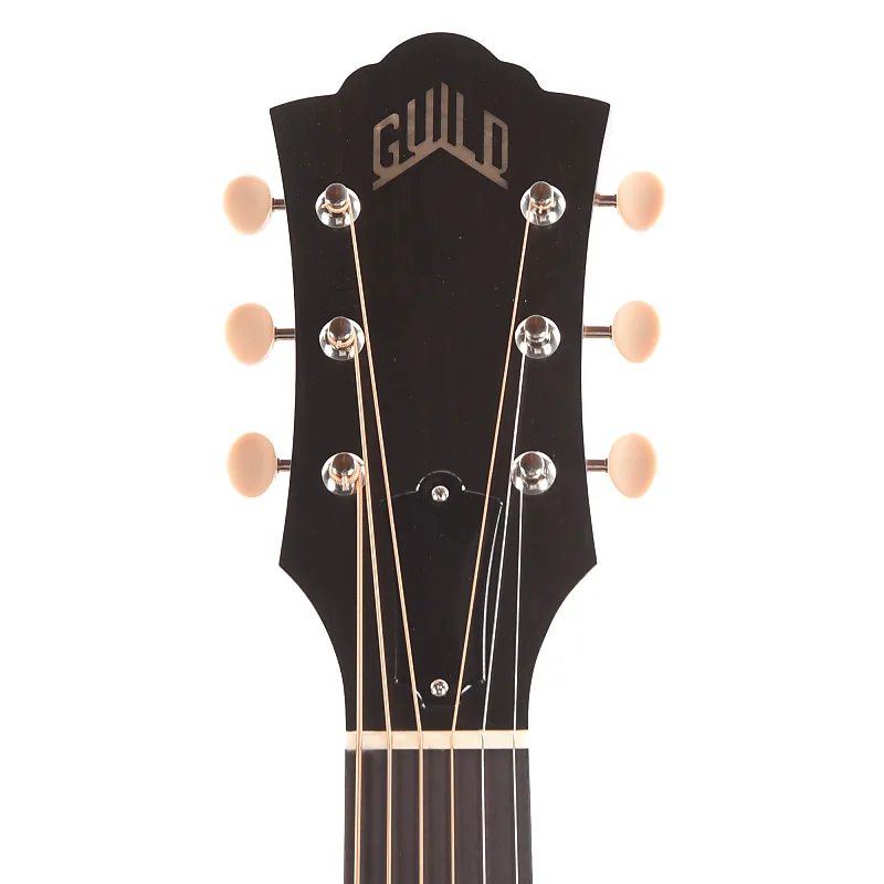 - Струнодержатель и накладка из черепаховой ракушки, белая окантовка, инкрустация головы грифа Guild Peak