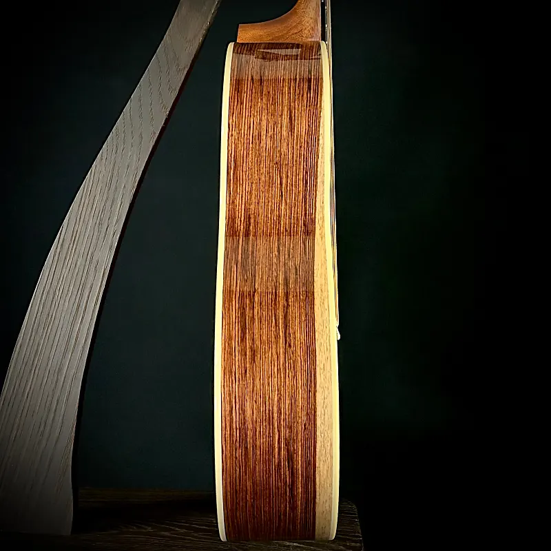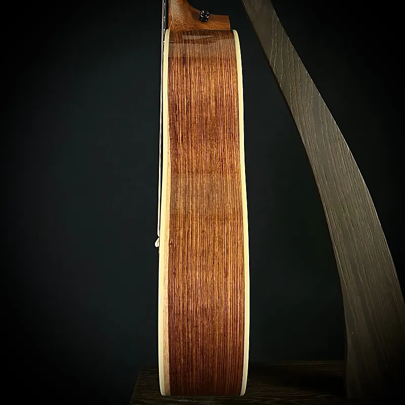 Разработанная Энди Пауэрсом для создания нового звучания, богатого зрелым теплом и мощью, новая модель Gold Label 814e Koa предлагает музыкантам новое звучание, вдохновленное классическими тонами винтажной эпохи. Эта модель имеет новую форму корпуса, которую мы называем Super Auditorium, напоминающую наш Grand Auditorium, но с немного более широкими контурами, что помогает извлекать больше громкости и усиленную низкочастотную составляющую. Спинка и обечайки из гавайского кроа в сочетании с верхом из торрефицированной ели Ситка создают потрясающую мощь и богатство средних частот, дополненное теплом и глубиной, обычно встречающимися только в старых, хорошо обкатанных гитарах. Внутри используется укороченный вариант нашей конструкции обвязки V-Class, который помогает добавить еще больше громкости и сустейна, сохраняя при этом фокус и ясность даже на высокой громкости. Новый шипованный соединительный элемент грифа добавляет список инноваций, улучшая передачу звука для большей резонансности и легкой регулировки. Gold Label 814e Koa может похвастаться впечатляющим комплектом декоративных элементов, возглавляемым нашей новой коллекцией Continental. инкрустации, новый дизайн медиатора, гондурасский бридж из палисандра, отделка из зернистой слоновой кости и тюнеры из старинного хрома Gotoh 510 с кнопками из черного дерева, в то время как глянцевый глянец всего корпуса демонстрирует естественные блики и пестроту коа. Эта модель поставляется с электроникой LR Baggs Element VTC и роскошным жестким корпусом с экстерьером из британского какао.
