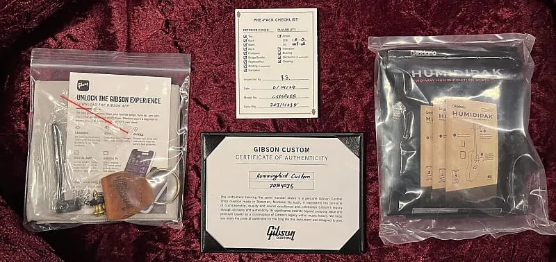 Hummingbird была первой квадратоплечей акустической моделью Gibson и на протяжении многих поколений становилась выбором музыкальных легенд в разных жанрах. Теперь Custom Shop Gibson с гордостью представляет новую модель Hummingbird Custom. Она основывается на классических особенностях Hummingbird, которых ожидают музыканты, включая верхнюю дека из ели Ситка, заднюю деку и обечайки из махагони и гриф из махагони длиной 24,75” с круглым профилем, и добавляет косметические элементы, вдохновленные Les Paul Custom, включая отделку из черного нитроцеллюлозного лака, многослойную окантовку на верхней и задней деках, головку грифа в стиле Les Paul с инкрустацией Custom split diamond из перламутра, окантованную накладку из черного дерева с инкрустацией Custom Block из перламутра и золотые колки Grover Rotomatic. Она оснащена электроникой L.R. Baggs Session VTC и жестким футляром.