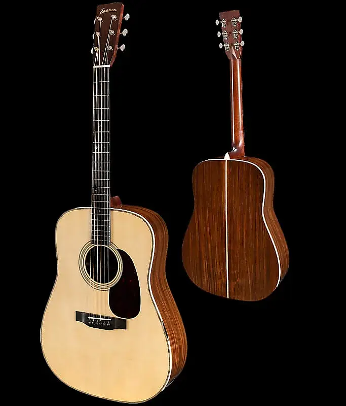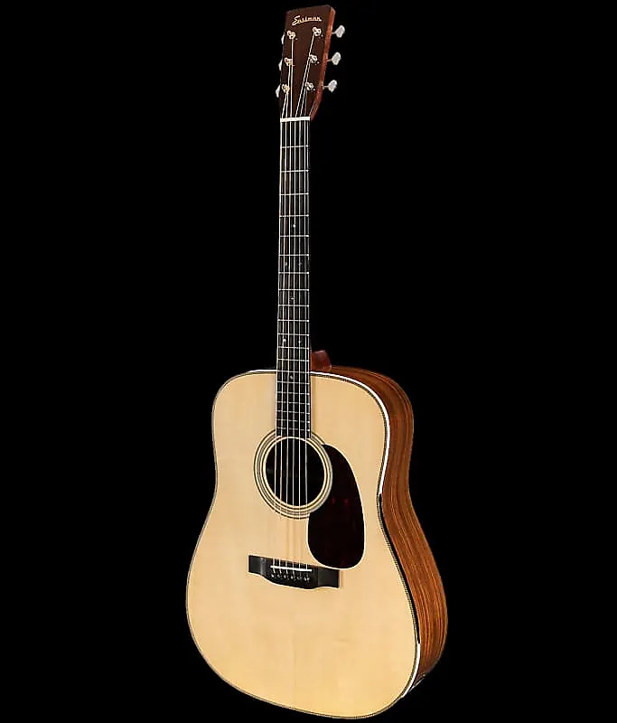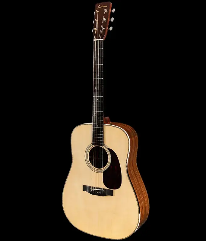 Eastman E20D-TC - это акустическая гитара dreadnought, известная своей верхней декой из термоустойчивой ели Адирондак и цельной задней декой и обечайками из розового дерева. Эта модель является частью серии Eastman «Thermo-Cured», что означает, что древесина верхней деки прошла обработку под действием тепла и давления, имитирующую процесс старения, в результате чего звук становится более открытым и резонансным. Она оснащена вручную выструганными X-брейсами, грифом из красного дерева с накладкой из черного дерева и классическими элементами дизайна, такими как окантовка «елочкой» и перламутровый пикгард под черепаху. E20D-TC разработана для того, чтобы выдавать мощный, сбалансированный и четкий звук при комфортной игре.
