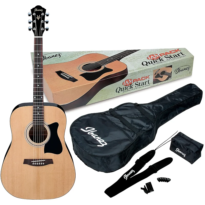 IJV50 JAMPACK от Ibanez поставляется с акустической гитарой полноразмерной стальной струны и всеми необходимыми аксессуарами для начала практики и выступлений. Отлично подходит для начинающих, комплект включает акустическую гитару V50NT дредноут с натуральной глянцевой отделкой. В набор также входит чехол для гитары, хроматический тюнер с зажимом, ремень для гитары, сумка для аксессуаров и медиаторы, обеспечивая все необходимое для начала игры.