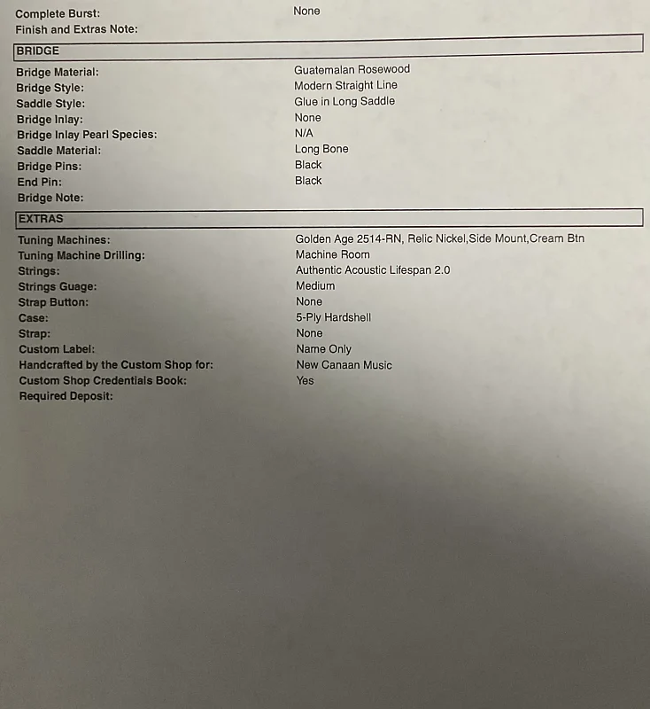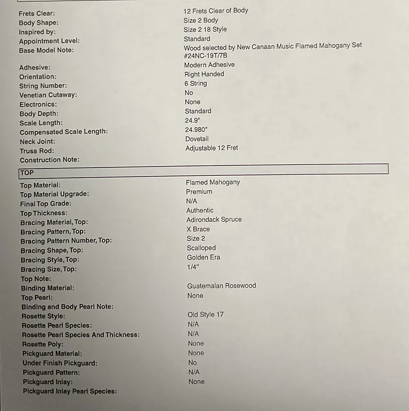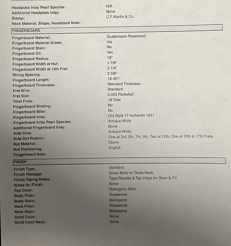 Бейли снова это сделал! Эта гитара Martin Custom - самая точная воссозданная модель Martin 2-17 1926 года. Мы основывались на экземпляре Martin 2-17 1926 года из нашей коллекции. Мы осмотрели каждый дюйм инструмента и воссоздали все спецификации, которые только возможно, чтобы создать эту замечательную гитару. Одним из обновлений, которое мы решили внедрить, стало использование фламированной махагонии, которую мы лично выбирали во время посещения фабрики Martin, вместо более обычной стандартной махагонии. Рисунок волокон просто потрясающе красив. Корпус усилен скаллопированным еловым деревом Adirondack толщиной 1/4” Golden Era, что обеспечивает бархатистый, мягкий тон и удивительную проекцию для такой маленькой гитары. Еще одной деталью является окантовка корпуса из гватемальского розового дерева. Гватемальское розовое дерево также использовалось для грифа и мостика. Подробный список дополнительных функций и обновлений представлен в спецификации CF Martin на фотографиях. Эту гитару можно увидеть в нашем магазине New Canaan Music, расположенном по адресу 90 Главная улица в Нью-Кейнан, Коннектикут. Если визит невозможен, мы предлагаем доставку. Если у вас есть вопросы, не стесняйтесь звонить нам по телефону 203-920-1833.