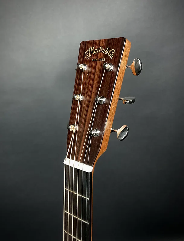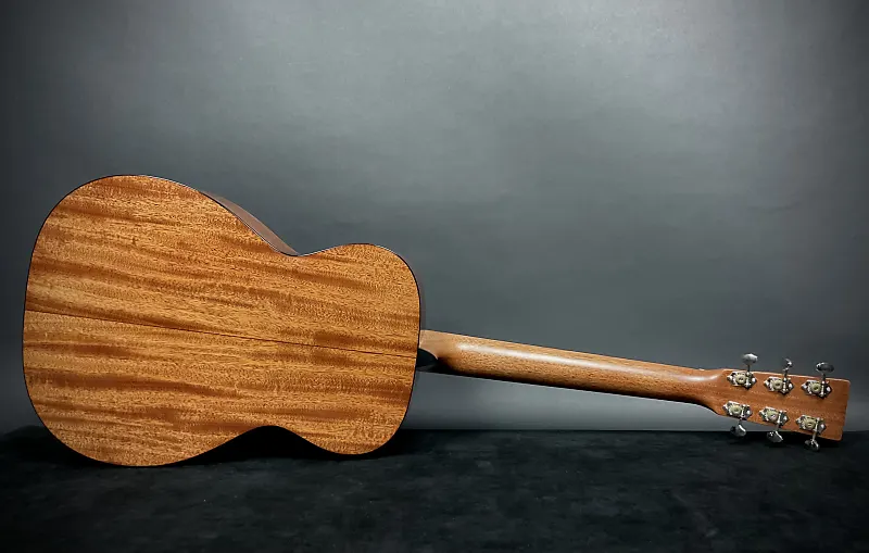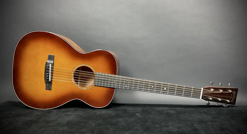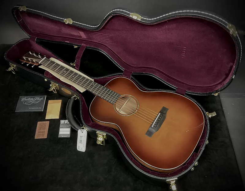 Это действительно классная, совершенно новая Martin Custom Shop с 14 ладами. Верхняя дека выполнена из карпатской ели, а задняя дека, боковины и гриф - из красного дерева. Это модель с оттенком 1933 года, и она выглядит так же потрясающе, как и звучит.