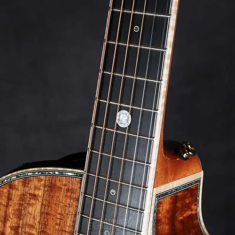 Совершенно уникальная трехсекционная распорка, изготовленная из черного дерева и сосны, позволяет верхней деке из koa обеспечить идеальное сочетание жесткости и резонанса. Ребра жесткости обрабатываются вручную мастерами-лютнерами Takamine - Норихару Сакураи и Тору Хирокавой - и подвергаются строганию для уменьшения веса более чем на 20%, что значительно увеличивает чувствительность верхней деки к вибрациям, обеспечивая богатый, яркий звук, превосходящий все ожидания от гитары с деки из koa. Также она оснащена грифом из красного дерева и накладкой из черного дерева. Затем на гитару наносится ультратонкий глянцевый лак, позволяющий каждой ноте вибрировать и сиять так же ярко, как и сама гитара.