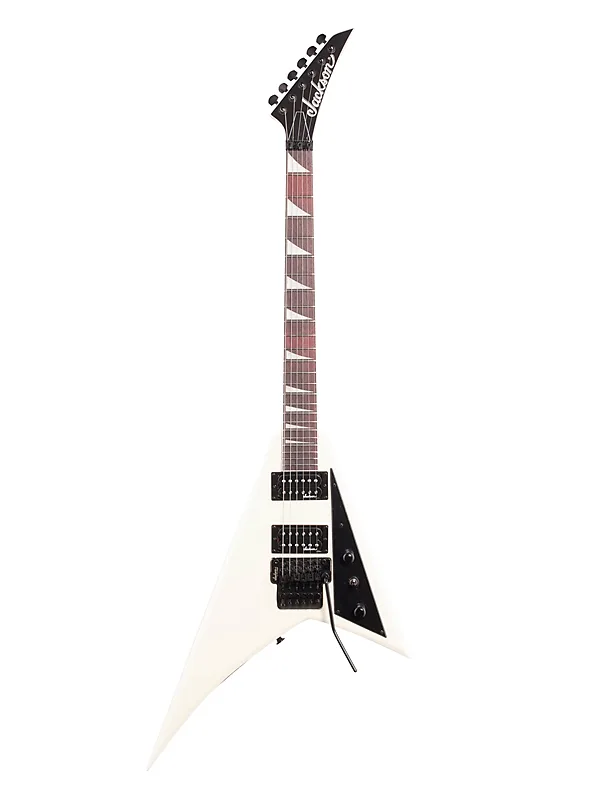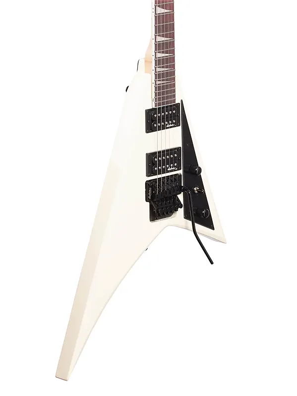 Стройная JS32 Rhoads имеет корпус из басового дерева, болтовой гриф из клена с графитовым усилением, накладку из амаранта с кантом и переменным радиусом (12”-16”) с 24 джамбо ладами и инкрустацией в виде акульих плавников из перлоида, а также головку грифа с кантом. Другие особенности включают двойные хамбакеры Jackson с керамическими магнитами и трехпозиционный переключатель, тремоло Floyd Rose с двойной фиксацией и брендом Jackson, черную фурнитуру и литые колки.