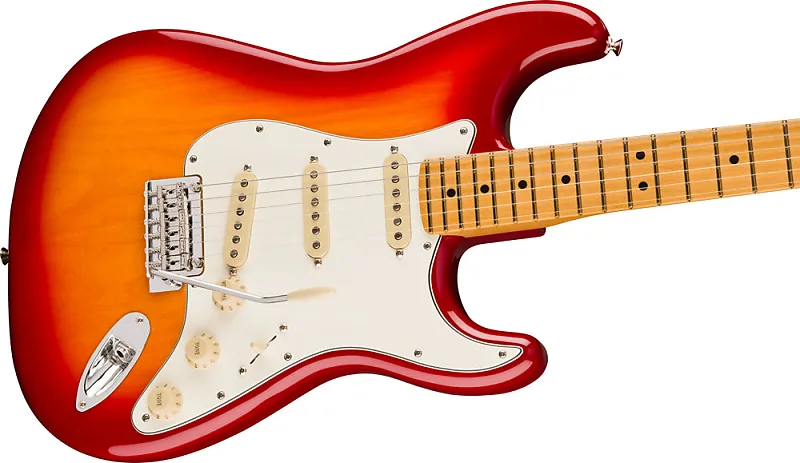 Этот Stratocaster оснащен двухточечным синхронизированным тремоло со сгнутыми стальными седлами, что обеспечивает характерный для Strat звук с превосходной работой тремоло для самых выразительных вибрато и смелых «дайв-бомб».