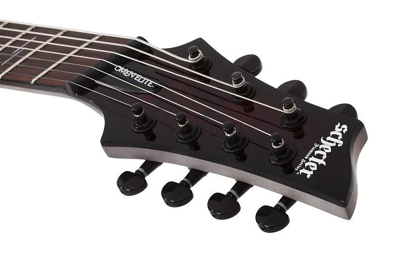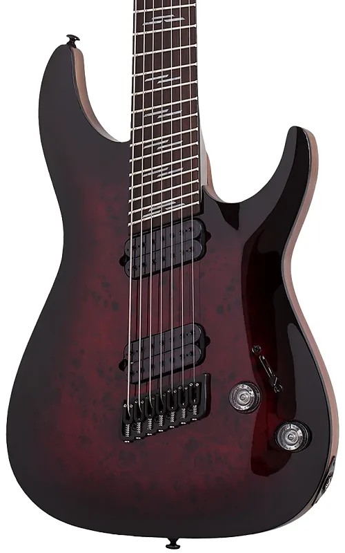 Корпус из красного дерева с верхом из капа привлекает внимание своим внешним видом, а фиксированный мост Hipshot для семиструнной мультискейловой гитары обеспечивает точную интонацию и комфортное ощущение при игре. Звукосниматели Schecter Diamond Heretic обеспечивают агрессивное звучание с высоким уровнем выхода, а 5-позиционный переключатель позволяет получать разнообразные тембры. Аппаратное обеспечение в черном хроме и отделка Black Cherry Burst завершают премиальный вид этой высокопроизводительной гитары расширенного диапазона.