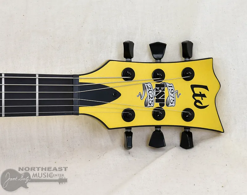 В честь 50-летия ESP Guitars, Northeast Music Center с гордостью предлагает ограниченную серию LTD EC-2025 50th Anniversary. Ограниченная тиражом всего 500 экземпляров по всему миру, EC-2025 предлагается в металлическом золотом цвете с черной фурнитурой и черной однопластинчатой окантовкой корпуса, шеи и головки грифа, что соответствует празднованию золотого юбилея ESP. Гитара оснащена специальной графикой «50» на накладке грифа в пределах ладов 11-13, а также логотипом 50th Anniversary на головке грифа. Созданная с конструкцией set-thru и мензурой 24,75”, гитара имеет корпус из красного дерева с кленовой накладкой, трехсекционную грифовую конструкцию из красного дерева и накладку грифа из маккассарского эбена с 24 экстра-джамбо ладами из нержавеющей стали. Среди особенностей EC-2025 можно выделить LTD замковые колки, замковой мост и хвостовой блок TonePros и набор выдающихся хамбакер-микрофонов Seymour Duncan, включая эксклюзивный для ESP Custom 14 на бридже, и культовый APH-1N в горловину. Разделение катушки доступно с помощью двухтактного управления. В комплект входит жесткий чехол ESP, облегающий форму.
