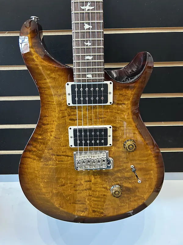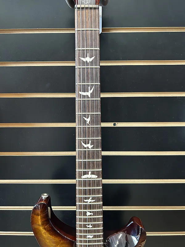 ХарактеристикиМатериал корпуса: Асимметрично скошенный клен (верх), красное дерево (задняя часть)Отделка корпуса: Высокоглянцевый нитролакПрофиль грифа: Pattern ThinМатериал накладки грифа: ПалисандрРадиус накладки грифа: 10"Длина мензуры: 25”Количество ладов: 24Инкрустация накладки: ПтицыЗвукосниматели: 85/15 (верх), 85/15 (низ)Мост: Запатентованное тремоло PRSСтруны: PRS Signature 10-46Колки: Блокирующие PRS Low MassФурнитура Финишная сумка NickelCase Premium Gig