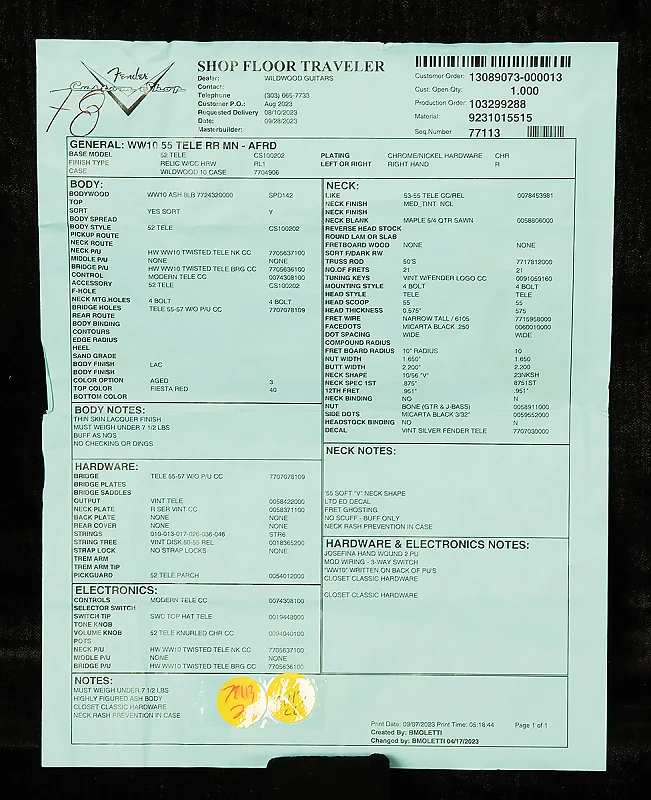 - Модель: Dealer Select Wildwood 10 Relic-Ready '55 Tele
