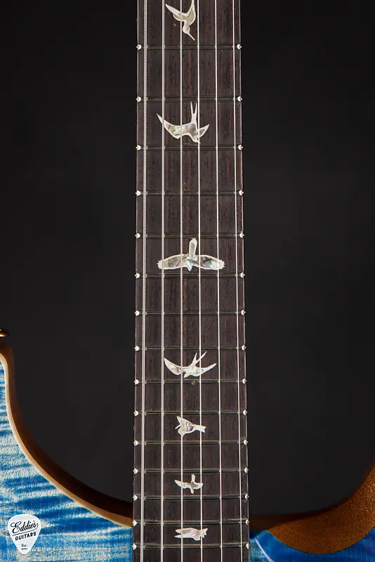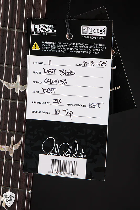 Гриф выполнен из одного куска махагони, сформированного в профиль DGT, отражающий личные предпочтения Дэвида Гриссома в комфорте и контроле. Его тщательно продуманная глубина - от 27/32 дюйма у порожка до 61/64 у 12-го лада - создает солидное, но при этом плавное ощущение, вырез, который, кажется, направляет руку, а не сопротивляется ей. Грифовая накладка из палисандра с фирменными инкрустациями птиц PRS излучает тепло и элегантность, а десятидюймовый радиус предлагает идеальное сочетание винтажной привычности и современной играбельности. Каждая деталь - от двухсекционного анкерного стержня PRS до блокирующих колков Phase III с имитацией костяных кнопок - способствует ощущению, что эта гитара создана не только для исполнения, но и для вдохновения.