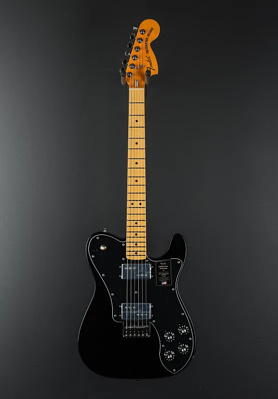 Обладая кленовым грифом '75 "C"-образной, American Vintage II 1975 года выпуска Telecaster Deluxe играет как мечта с кленовым грифом радиусом 9,5 дюйма и средними джамбо-ладами. Характерный для производства в 1975 году, этот Telecaster оснащен удобной гайкой стержня в стиле "Bullet", трехболтовой шейной пластиной с механизмом Micro-Tilt и предлагается в черном цвете, Mocha Brown или 3-Color Sunburst поверх ольхового корпуса. Другие особенности включают в себя 6-седельный бридж хардтейл с блочными седлами из нержавеющей стали и винтажные тюнеры Tele Deluxe.