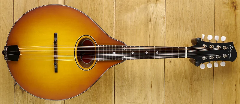 Eastman PCH M104 Goldburst, с верхней декой из цельной ели, корпусом и боками из махагони, шириной седла 30 мм и мензурой 13 7/8". Поставляется с чехлом для переноски.