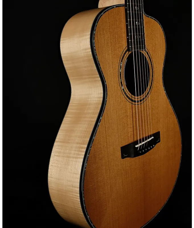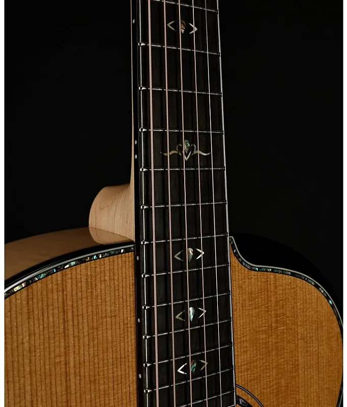 Верхняя дека выполнена из цельной ели Энгельманна (торрефицированной - выдержанной до состояния «винтаж»), а корпус и стороны - из цельного кленового флама. Гриф из клена оснащен накладкой из эбена. Инкрустация моста и седло выполнены из кости. Для подключения к электронике установлен звукосниматель L.R. Baggs Anthem.