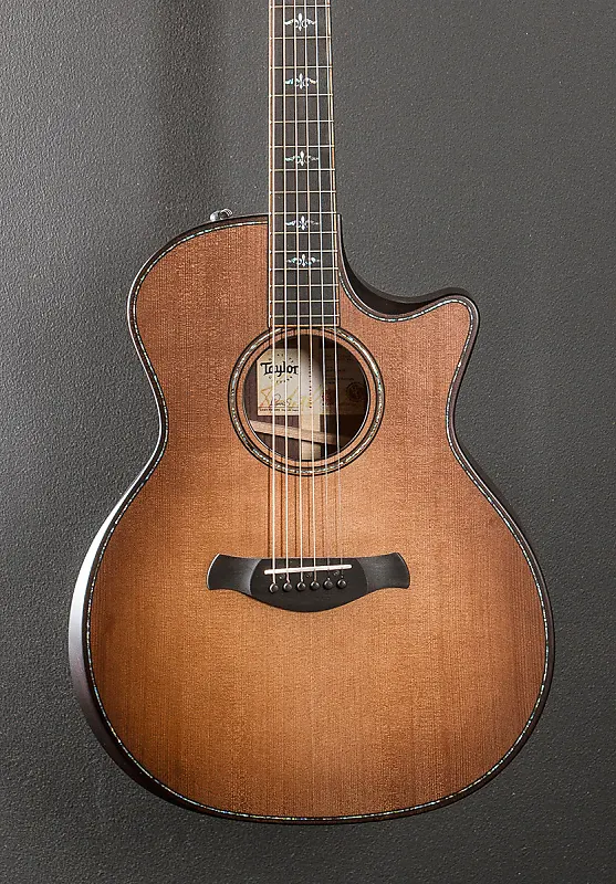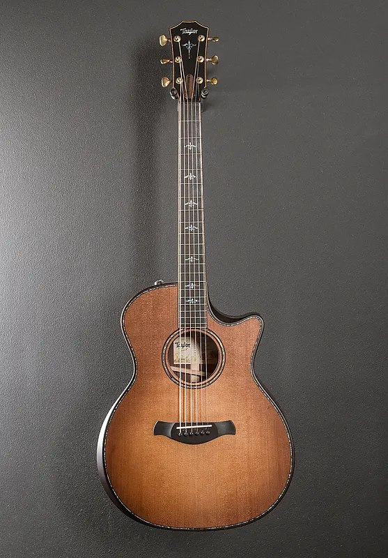 Дека с покрытием Wild Honey Burst, верхняя дека и боковые стороны из Koa с эффектом Edgeburst, матовое покрытие Silent, корпус Grand Auditorium с скошенной подлокотной частью и вырезом, верхняя дека из елового дерева Lutz, одинарная розетка из ракушки Paua, распорка типа V-Class с Relief Rout, спинка и боковые стороны из индийского палисандра, вставка и окантовка верха и спинки из ракушки Paua, гриф из неотропического красного дерева с накладкой из эбена West African Crelicam и инкрустацией Paua/Perl Belle Fleur, длина мензуры 25.5 дюйма, ширина верхнего порожка 1 3/4 дюйма, колки Gotoh 510, система звукоснимателей Expression 2 и жесткий кейс