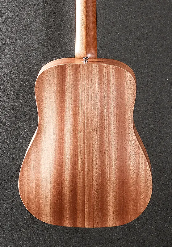 Натуральная, матовая отделка, корпус типа Dreadnought 3/4, верх из тропического махагона, пластиковая розетка с одним кольцом, X-образная расстановка брусков, многослойная с толстого сапеле спинка и обечайки, гриф из африканского эбена Crelicam с инкрустацией из итальянского акрила 4 мм на грифе из клена Hard Rock, мензура 22 3/4″, ширина верхнего порожка 1 11/16″, включен мягкий чехол