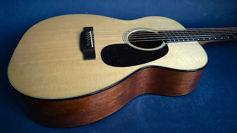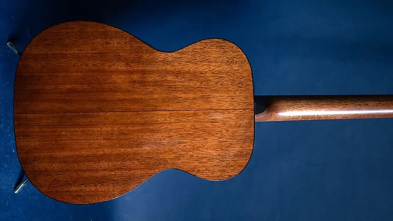Естественный с возрастной тонировкой, шкала 24,9 дюйма, верхняя дека из ели ситка и резонансная дека и обечайки из махагона, накладка грифа из эбена с классическими абалоновыми маркерами 18-точечного типа, ширина у порожка 1 3/4 дюйма, профиль грифа GE Modified Low Oval с высокопроизводительным сужением, GE выемчатое 1/4-дюймовое расположение брусков верхней деки, мост из эбена Golden Era с закругленными углами, никелированные колки с открытой задней частью, звучит потрясающе, громче, чем можно ожидать, очень удобно играть, поставляется с новым жестким чехлом.
