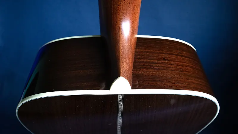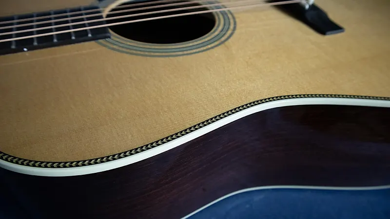 Натуральная верхняя дека из ели Sitka с эффектной отделкой елочкой, корпус и обечайки из индийского палисандра, неограниченная накладка из черного дерева с мозаикой из абалона в виде ромбов и квадратов, ширина верхнего порожка 1 3/4 дюйма, модифицированный профиль грифа с низким овалом и высокопроизводительным сужением, никелированные колки с открытой задней частью, современная классика, громкая с насыщенным чистым басом, вся гитара, которая вам когда-либо понадобится.