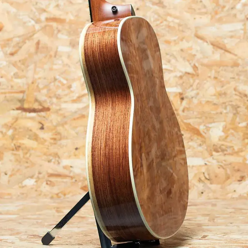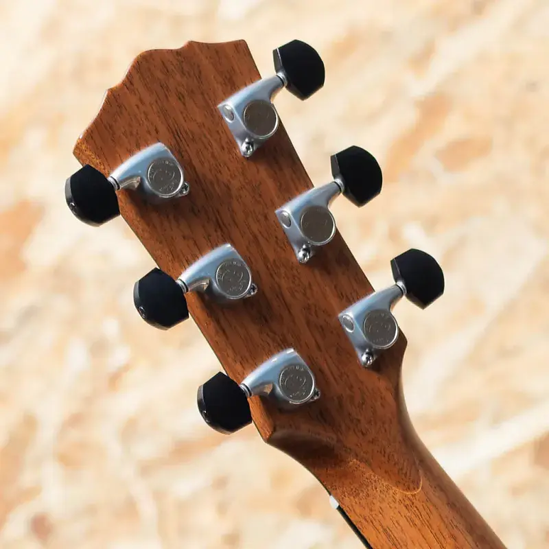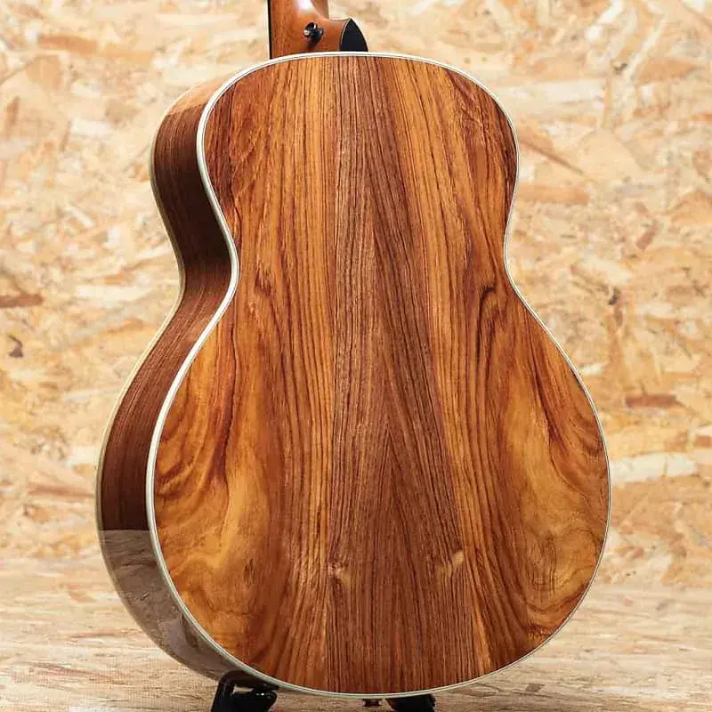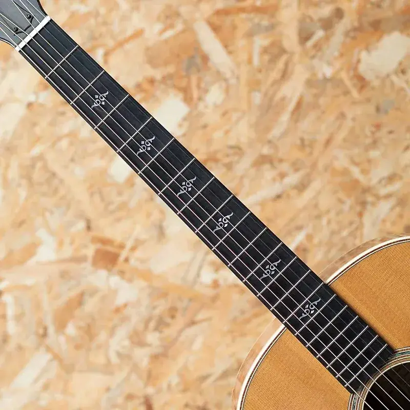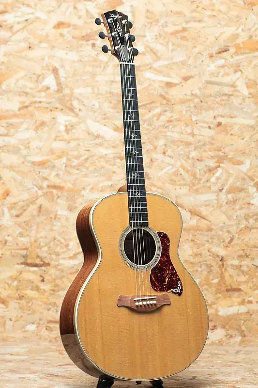 Компания Taylor Guitars была основана в 1974 году Бобом Тейлором и Куртом Листагом. С 2000-х годов Taylor быстро развивалась благодаря инновационным идеям, высоким технологиям и продуманному маркетингу, и теперь является одним из ведущих мировых брендов акустических гитар. Она имеет очень высокий процент использования среди профессиональных музыкантов в Японии и особенно в Соединенных Штатах, и пользуется огромной популярностью. Этот инструмент является новой коллекцией "Gold Label 814e", которая "выводит новый тип звука Taylor на мировой уровень". Верхняя дека из тонированной ели, боковые панели и задняя дека из гвенской розового дерева, гриф из неотропического махагона, накладка грифа из африканского эбена, подставка из гвенской розового дерева, накладки на гриф из перламутра Continetal, окантовка из клена, колки Gotoh 510 и звукосниматель LR Baggs Element VTC. Изготовлена из лучшей резонансной древесины, достойной названия Gold, эта коллекция обладает корпусом формы Super Auditorium, который лучше отражает преимущества конструкции X-образной V-Class поддержки. Этот стиль основан на популярной форме Grand Auditorium с немного удлиненным нижним участком. Конструкция V-Class также была усовершенствована и включает новую V-Class поддержку типа Fanned, которая создает теплое, древесное звучание и сладкий, широкодиапазонный тон, вдохновленный акустическими гитарами 1930-х и 1940-х годов. В процессе используется традиционный горячий клей из животного желатина, обладающий отличными акустическими свойствами. Шиповое соединение грифа теперь прочнее, чем прежде, и позволяет легче и точнее регулировать угол грифа. Резонанс всего корпуса был улучшен, что позволяет проводить ультра-точную настройку при необходимости. Новая опция для гитар Taylor, обеспечивающая как высокий уровень громкости, так и длительность звучания. Пожалуйста, играйте с ней без ограничений.