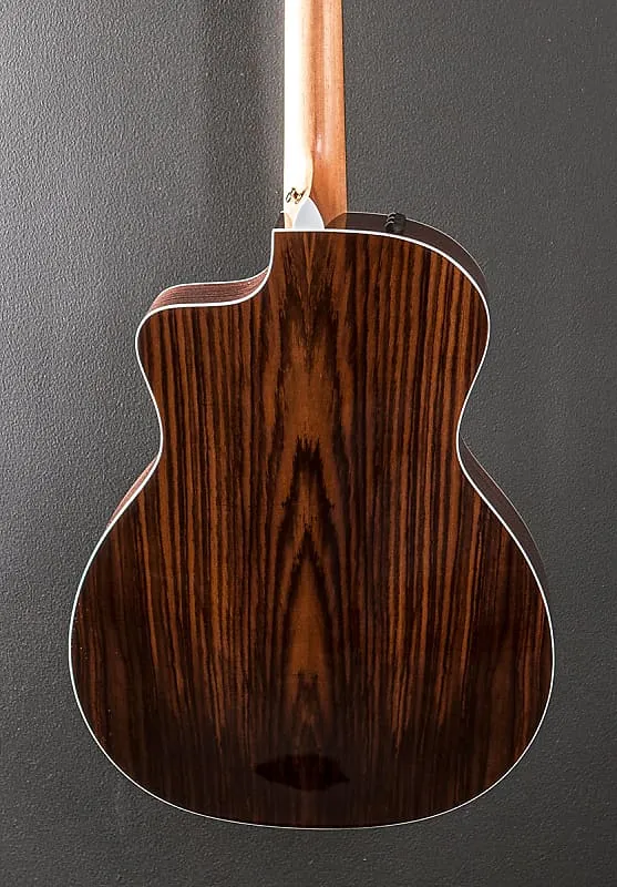 Корпус Natural, форма Grand Auditorium с венецианским вырезом, дека из ели Sitka, одинарная кольцевая розетка из итальянского акрила в виде рыбьей кости, X-образное распорное строение, многослойные спинка и боковины из розового дерева, белая окантовка, гриф из тропического махагони с накладкой из западноафриканского эбена Crelicam и инкрустацией в виде малых ромбов на грифе из тропического махагони, мензура 25,5 дюймов, ширина верхнего порожка 1 11/16 дюйма, с системой звукоснимателей Expression 2 и жестким футляром