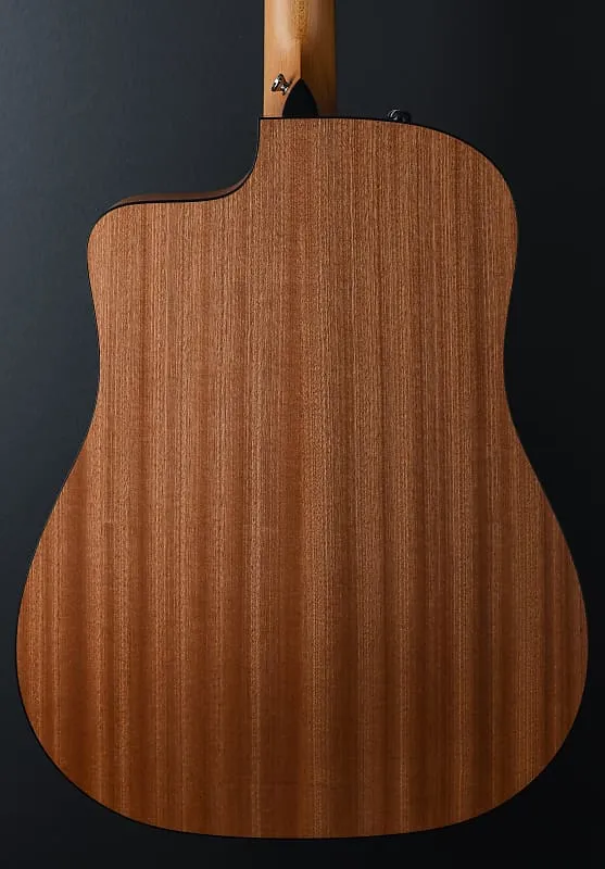 Натуральное матовое покрытие, форма корпуса Dreadnought с венецианским вырезом, верх из ели Sitka, трехкольцевая пластиковая розетка, X-образные струны, многослойные задняя часть и боковины из сапеле, черная окантовка, накладка грифа из черного дерева с 4-мм точечными инкрустациями из итальянского акрила на грифе из клена, длина мензуры 25,5”, ширина нижнего порожка 1 11/16”, с системой звукоснимателей Expression 2 и чехлом для концертов