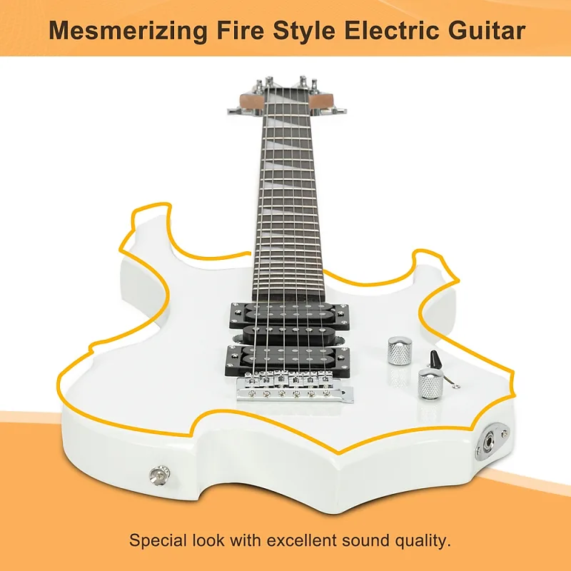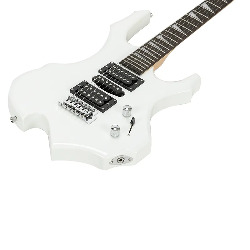 Уникальный дизайн электрогитары в форме пламени привлекает внимание и добавляет индивидуальность вашему исполнению. Узоры на корпусе с 24 ладовыми ладами также создают эффектный вид, выделяя вашу гитару среди других.