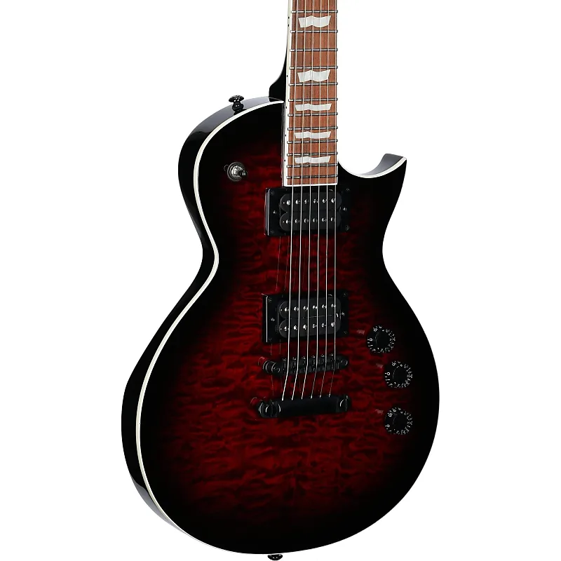 - Конструкция Set Neck Технические характеристики -КОНСТРУКЦИЯ: Set Neck -МENS: 24.75" -КОРПУС: Махагон с верхом из клена с рисунком Quilted -ОКРАСКА: Полупрозрачная Вишня -ГРИФ: 3-секционный Махагон -НАКЛАДКА: Жареный Jatoba -РАДИУС НАКЛАДКИ: 350 мм -ШИРИНА ПРОЗА: 42 мм -ТИП ПРОЗА: Формованный -КОНТУР ГРИФА: Тонкий U -ЛАДЫ/ТИП: 22 XJ -ЦВЕТ ФУРНИТУРЫ: Черный -КРЕПЛЕНИЕ РЕМНЯ: Стандартное -МЕХАНИКА ЗВУКОСТРУННАЯ: LTD -БРIДЖ: TOM с Tailpiece -ЗВУКОВОЙ ДАТЧИК ГРИФА: ESP LH-150N -ЗВУКОВОЙ ДАТЧИК БРIДЖ: ESP LH-150B -ЭЛЕКТРОНИКА: Пассивная -РАЗМЕЩЕНИЕ ЭЛЕКТРОНИКИ: Громкость бриджа/Громкость грифа/Тембр (Push/Pull)/Тумблер -СТРУНЫ: XL110 (.010/.013/.017/.026/.036/.046)