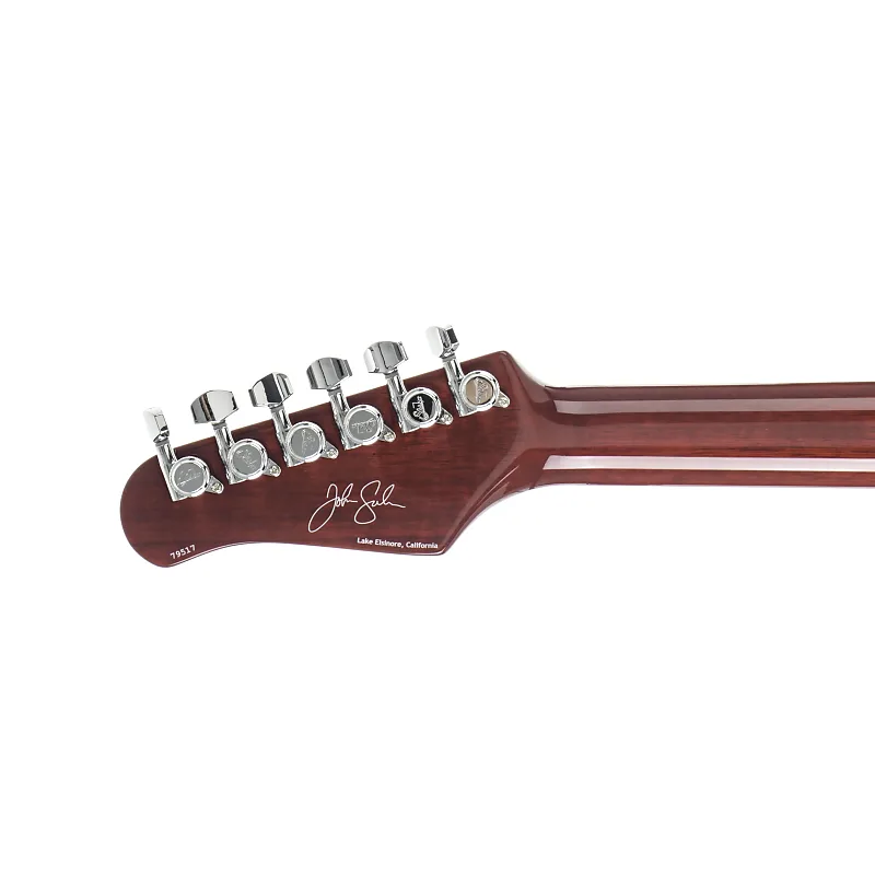 White Limba, одна из любимых тональных древесин Джона, лежит в основе его гитары серии Signature. Отделка Trans Red, обработанная кромка и окрашенный бакелитовый пикап-гард придают гитаре безусловно элегантный вид. Корпус из White Limba имеет вырезы (chambered) для дополнительной выразительности в средних и верхних частотах. Джон также хотел, чтобы его модель подходила для выступлений. Он выбрал фиксирующий мост Wilkinson WVS130 для максимальной стабильности настройки и универсальную проводку HSH, готовую к концерту. Среднее положение переключателя из 5 позиций активирует оба хамбакера, а все пять положений обеспечивают шумоподавление.