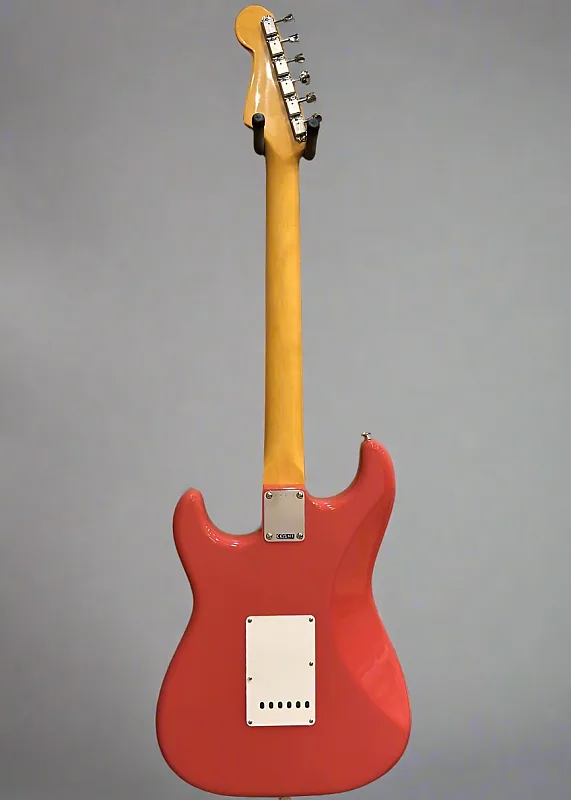 Цвет Fiesta Red, корпус из ольхи, покрытие глянцевым нитроцеллюлозным лаком, гриф 1961 года формы C из клена с радиусом 7.25" и накладкой из розового дерева с винтажными высокими ладками, длина мензуры 25.5", ширина порожка 1.650", звукосниматели Pure Vintage '61 для сингловых катушек Strat, 5-позиционный переключатель с управляющими элементами master volume, tone 1 (гриф/середина) и tone 2 (бридж), синхронизированное Pure Vintage тремоло. тремоло с изогнутыми стальными седлами, тюнеры Pure Vintage single line Fender deluxe, 7,9 фунтов, с жестким футляром