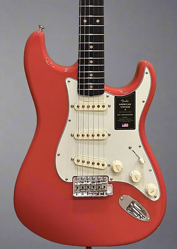 Этот инструмент оснащен премиум-корпусом из ольхи, тремя звукоснимателями Pure Vintage 1961 Stratocaster и средним грифом «C»-образной формы из клена, соединенным с накладкой из палисандрa радиусом 7,25 дюйма.» American Vintage II 1961 Stratocaster воспроизводит характерный тон и ощущение оригинала. Другие особенности включают тремоло с синхронизацией в стиле винтаж с блоком из холоднокатанной стали и изогнутыми стальными седлами, однотипные тюнеры «Fender Deluxe» и 3-слойный пиццегард.