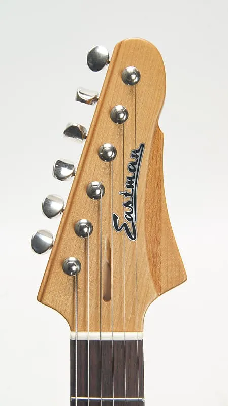 Привычный корпус в стиле S с двойным вырезом, немного смещенный для современного вида. Корпус из черного дерева Limba резонансный и прочный, представлен здесь в очень стильной отделке Moss Black satin, которая, без сомнения, будет отлично стареть со временем. Смотрящий в будущее, он оснащен новой конструкцией шеи Eastman с длинным шипом и креплением на 2 болта - идея заключается в более надежной подгонке и возможности легко менять угол наклона при необходимости. Привычная длина мензуры 25,5 дюйма удобна, а ценители винтажной эстетики оценят более толстую шейку с формой C в винтажном стиле. Профиль. Сочетание обожженного клена и красного дерева выглядит сразу стильно и сохраняет свои свойства со временем.