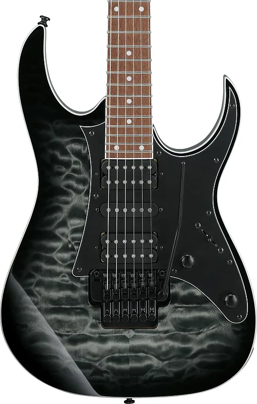Электрогитара с цельным корпусом из меранти, гриф из клена, накладка на гриф из жатобы, 2 хамбакерных звукоснимателя, 1 сингл-куплый звукосниматель и тремоло Edge-Zero II - прозрачный серо-дымчатый градиент.