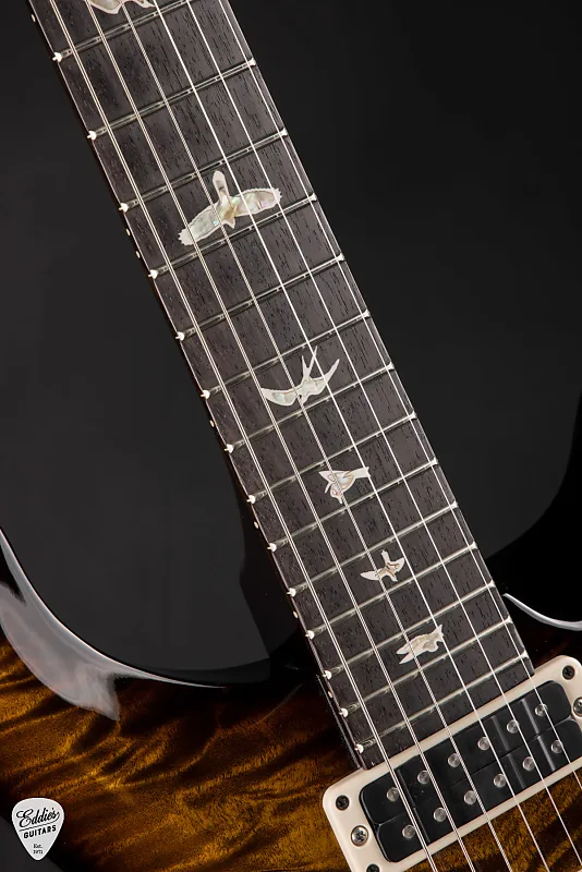 Изготовленная с задней частью из красного дерева и красиво вырезанной верхней дека из клена, корпус Studio имеет виолончельное оформление PRS, придающее инструменту изысканный, скульптурный профиль, который одновременно удобен и резонирует. Отделка Black Gold Wraparound Burst добавляет выразительную визуальную глубину, плавно переходя от насыщенного темного синего к глубоким дымчатым краям, подчеркивающим текстуру клена. Эта высокоглянцевая нитроцеллюлозная лакировка позволяет древесине дышать и стареть. грациозно со временем, улучшая как внешний вид, так и тональную отзывчивость инструмента.
