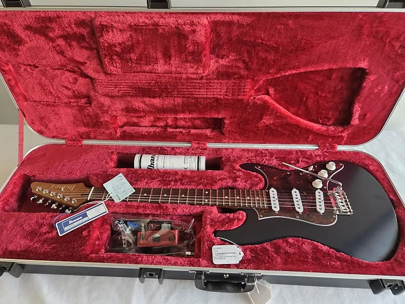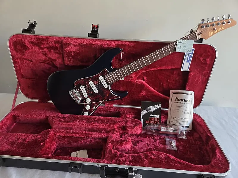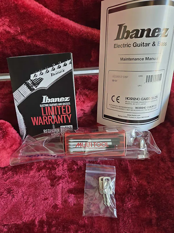Ibanez Prestige AZ2203N - Dark Tide Blue (Сделано в Японии) Продается потрясающий Ibanez Prestige AZ2203N в цвете Dark Tide Blue, весом 3,45 кг (7,6 фунта). Это новый инструмент, который включает оригинальный жесткий футляр Ibanez, вместе со всеми заводскими инструментами, документацией и аксессуарами, точно в том виде, в каком они поступили с завода. AZ2203N представляет вершину современного дизайна гитар из серии Prestige компании Ibanez, изготовленную вручную в Японии. Она сочетает в себе тон и ощущение винтажной гитары с передовой играбельностью и точной инженерией. Гриф из жженого клена S-TECH обеспечивает непревзойденную стабильность и гладкость покрытия сатин, а три сингл-койл звукоснимателя Seymour Duncan Fortuna обеспечивают динамичный, выразительный тональный диапазон с исключительной ясностью. Мост-тремоло Gotoh T1502S обеспечивает идеальную настройку и плавное функционирование, а регулятор blender расширяет 5-позиционный переключатель для дополнительных тональных комбинаций, включая желанную смесь мостового и грифового звукоснимателей. От кристально чистого звучания до мощного overdrive, модель AZ2203N охватывает все. Эта гитара безупречна и готова к профессиональным выступлениям или студийной работе - отличный пример того, почему линейка Prestige от Ibanez пользуется столь высоким уважением. --- Технические характеристики Модель: Ibanez Prestige AZ2203N Отделка: Dark Tide Blue (DTB) Вес: 3,45 кг Корпус: ольха Гриф: обожженная кленовая древесина S-TECH, профиль Oval «C» Накладка на гриф: палисандр с перламутровыми точечными инкрустациями Лады: 22 джамбо из нержавеющей стали (обработка кромок ладов Prestige) Длина мензуры: 25,5″ (648 мм) Радиус накладки на гриф: компаунд 228-305 мм (9″-12″) Ширина порожка: 42 мм (кость) Мост: тремоло Gotoh T1502S, расстояние между струнами 10,5 мм Звукосниматели: Seymour Duncan Fortuna (конфигурация SSS) Орган управления: 1 регулятор громкости, 1 регулятор тембра, 5-позиционный переключатель, ручка Blender Фурнитура: хром Струны: D’Addario EXL110 (.010-.046) Страна производства: Япония (фабрика FujiGen Gakki) В комплекте: оригинальный жесткий кейс Ibanez, заводские инструменты и документация.